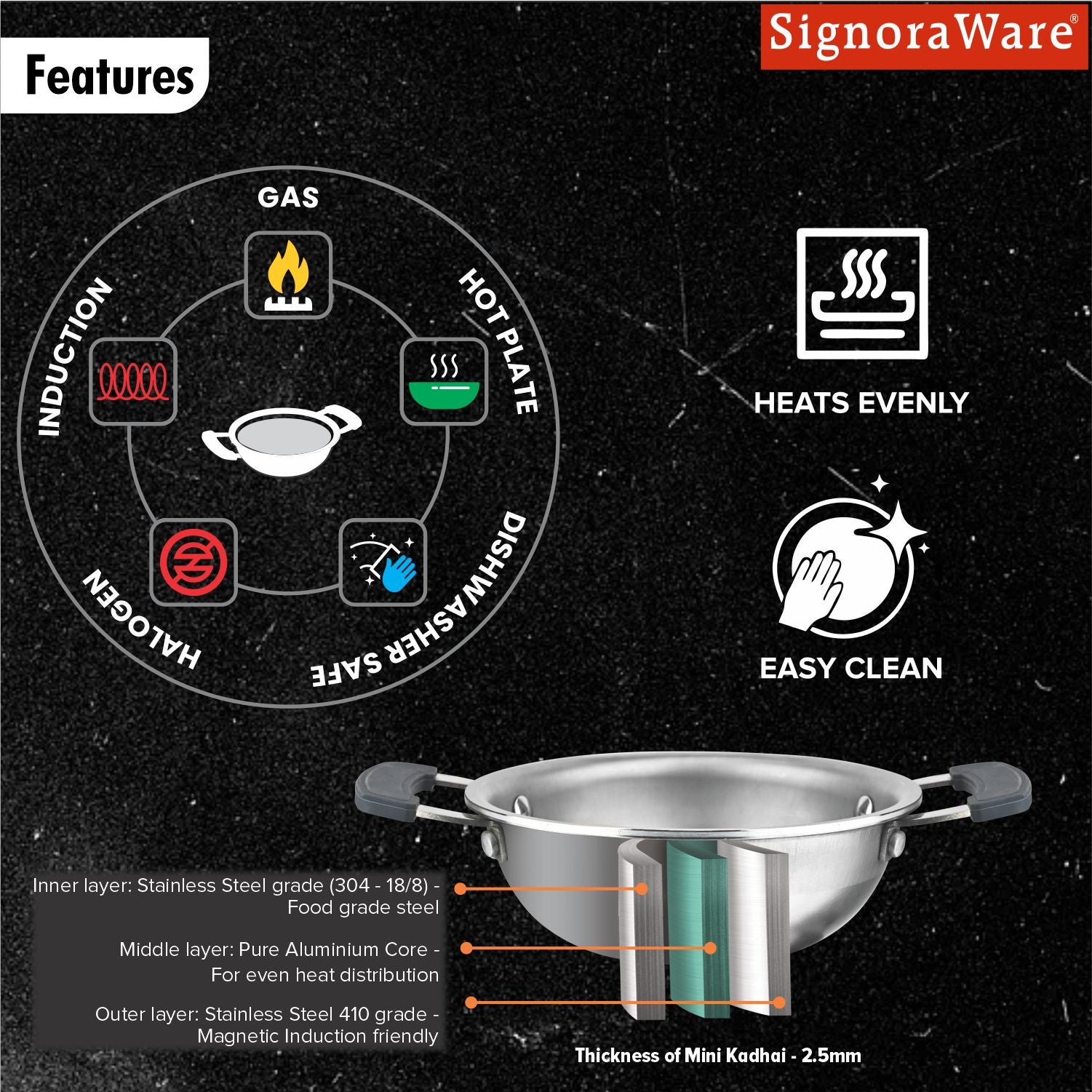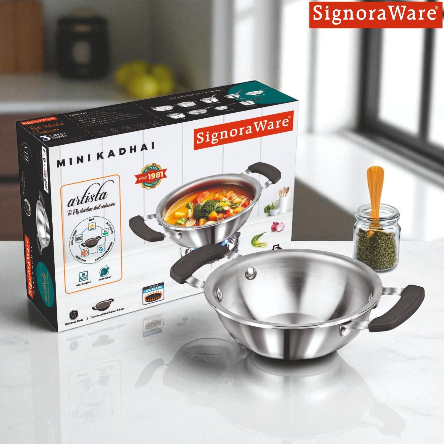 SignoraWare Artista Stainless Steel Cookware Mini Kadhai | Ideal for Pakoras, Sautéed vegetables, Aloo fry or Small Portions Of Fritters | Best for Frying & Roasting Spices |Great for Melting & Mixing