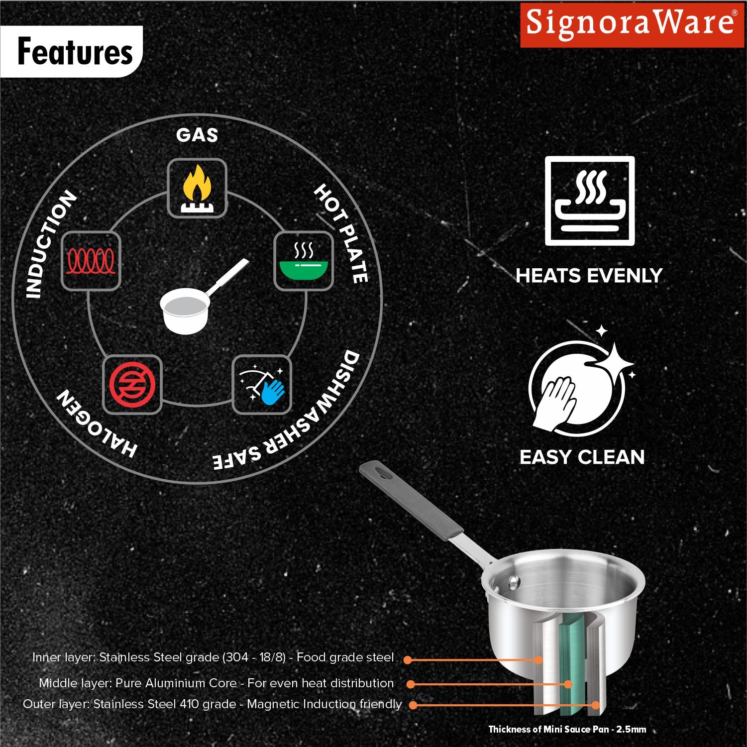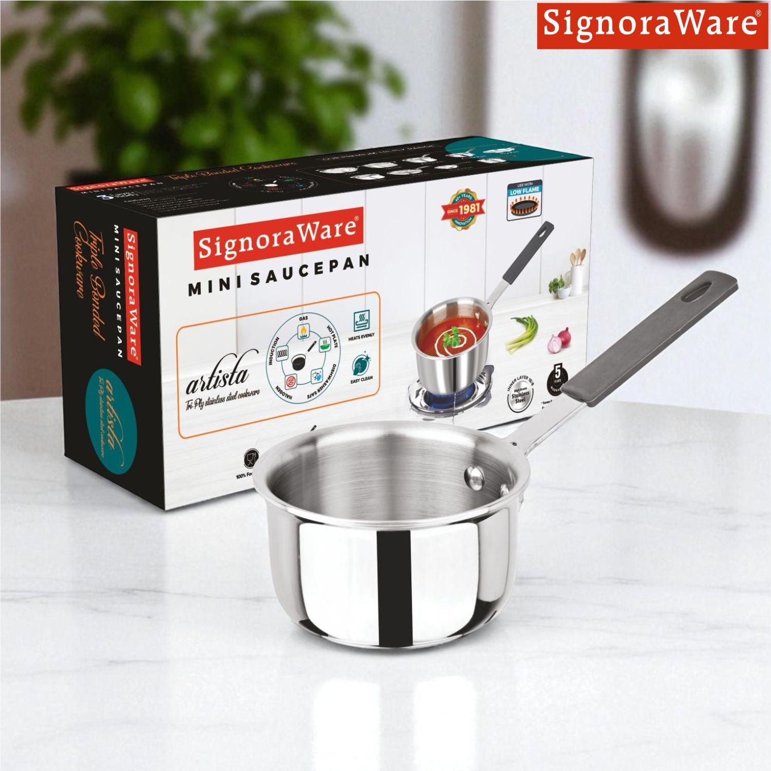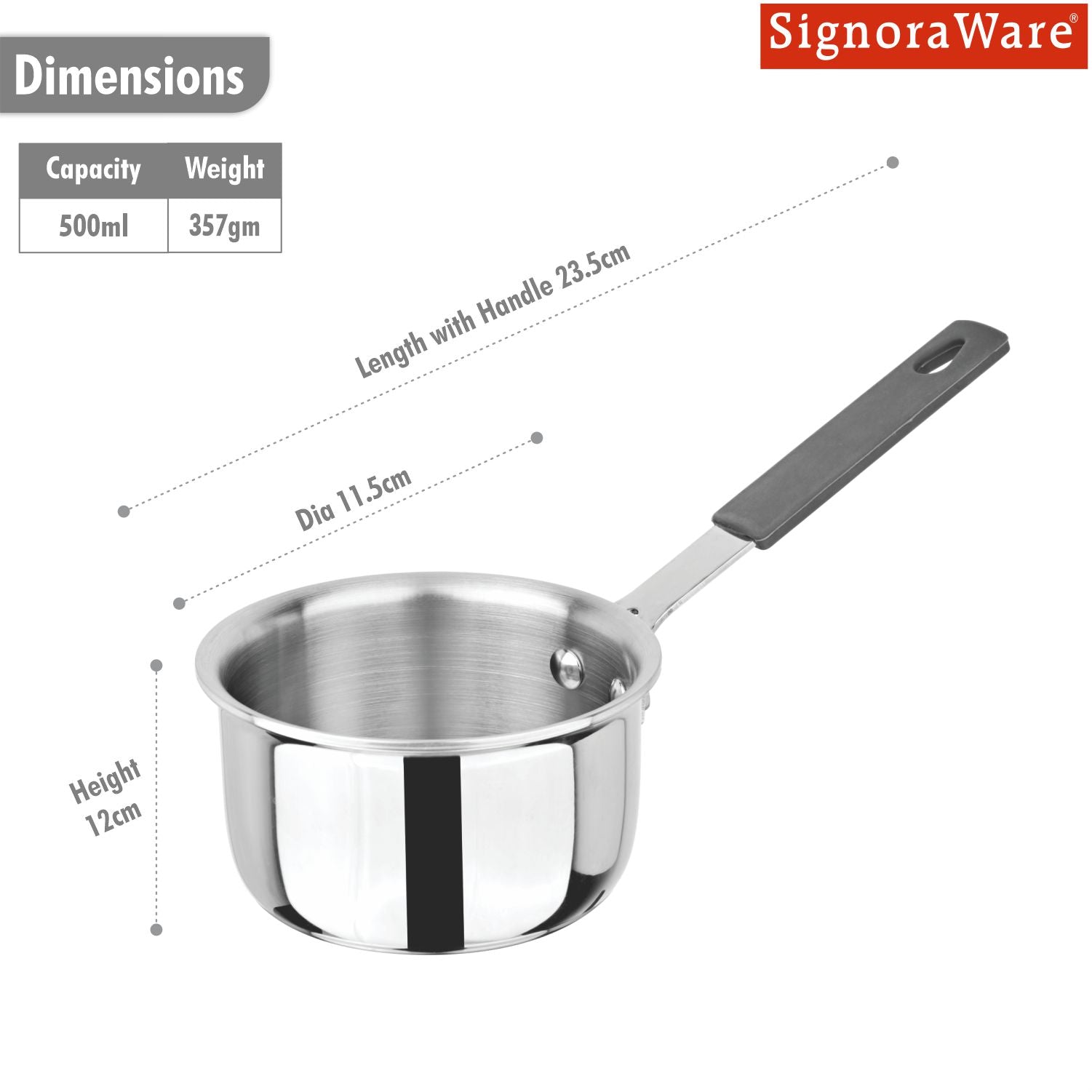 SignoraWare Artista Tri-Ply Stainless Steel Mini Saucepan 10cm | Microwave Safe | Save Energy & Time | Easy to Clean | Heating Milk & Coffee | Ideal for Small batch of Pasta, Noodles & Oats ( 500ml )