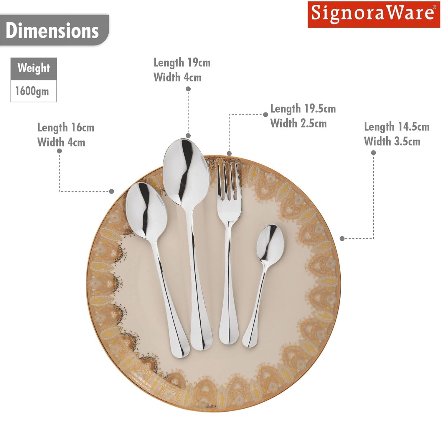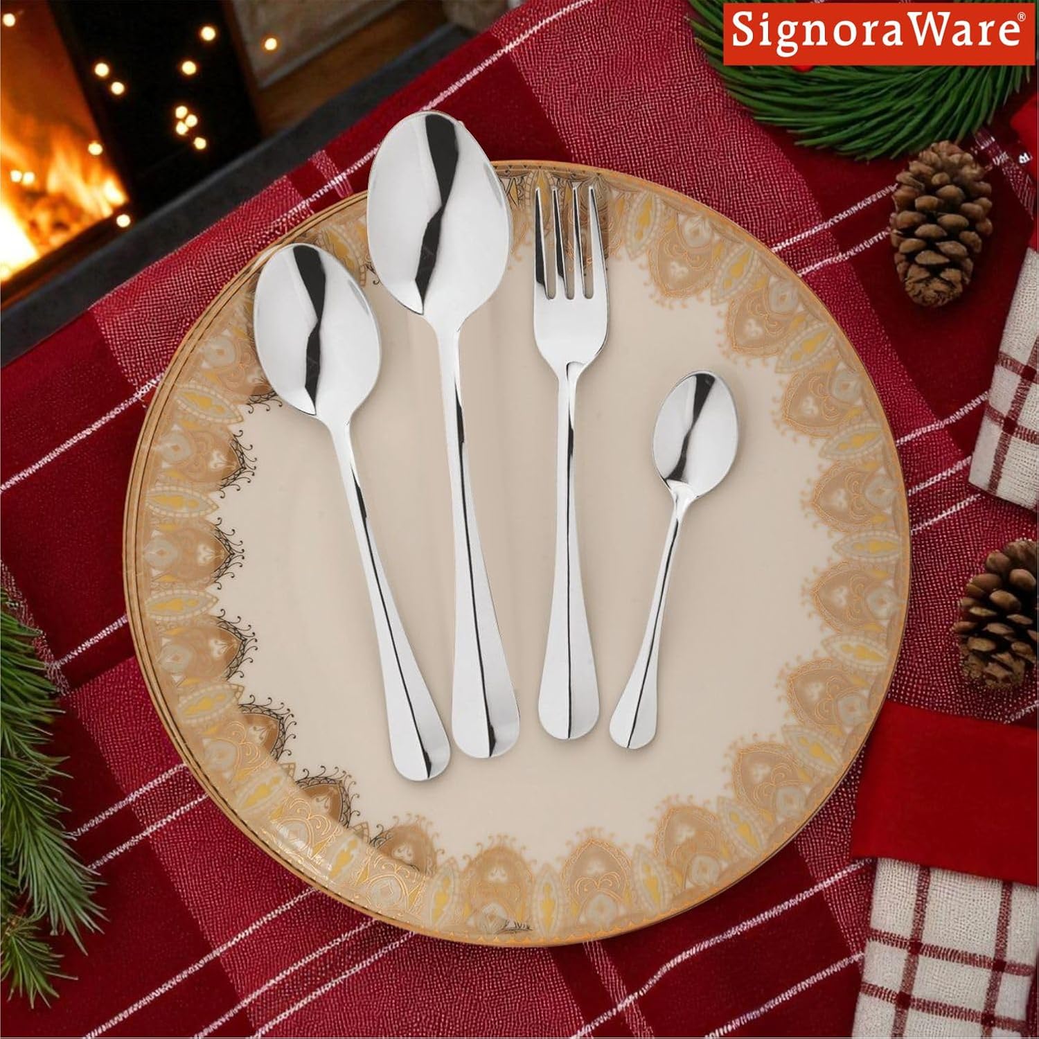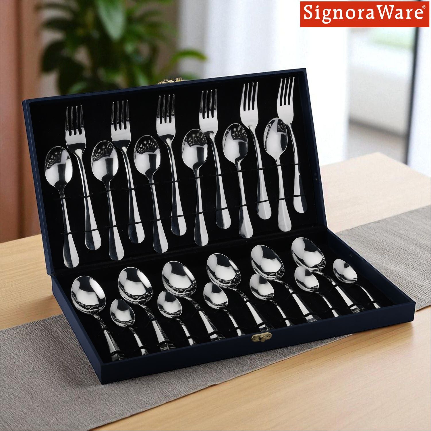 SignoraWare BUDGET Stainless Steel Cutlery Set | High-Grade Stainless Steel Spoons & Forks | Durable & Rust-Resistant | Gifting Set for Dining | Ideal for Serving ( Set of 24.pcs | Steel )